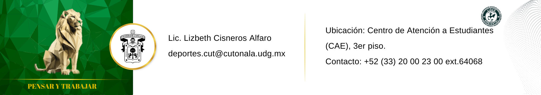 Espacio en donde encontrarás la oferta deportiva del Centro Universitario de Tonalá, además de recomendaciones de eventos y actividades virtuales orientadas al tema de Fomento Deportivo a nivel regional, nacional e internacional, lo anterior con el objetivo de fortalecer la formación integral de la comunidad universitaria.