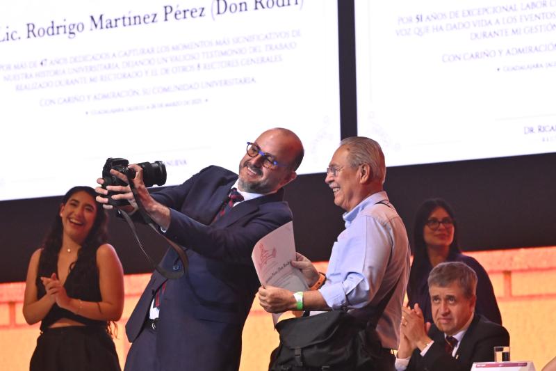 , Aplaudió el trabajo de las y los colaboradores y directivos de esta Casa de Estudio por medio de la entrega de diversos reconocimientos: “Estos son los pilares de la universidad, los que nos hacen ser la gran Universidad de Guadalajara”, subrayó.