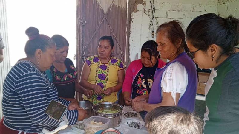 , Tras la elaboración de las estufas, las mujeres cocinaron recetas de la cultura purépecha: con los rayos de Sol como combustible, elaboraron distintos tipos de mole con habas, flor de calabaza y mole con huitlacoche.
