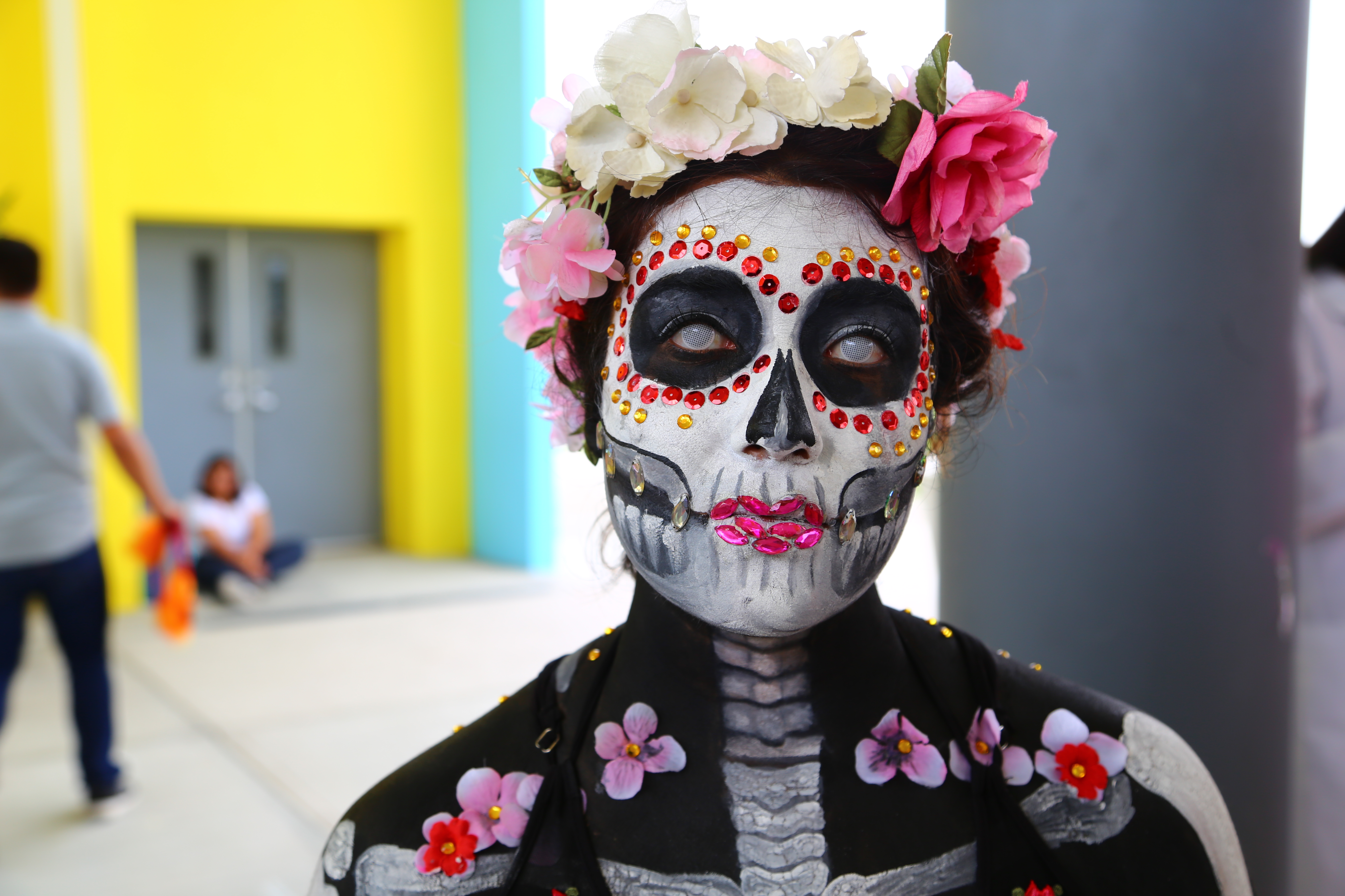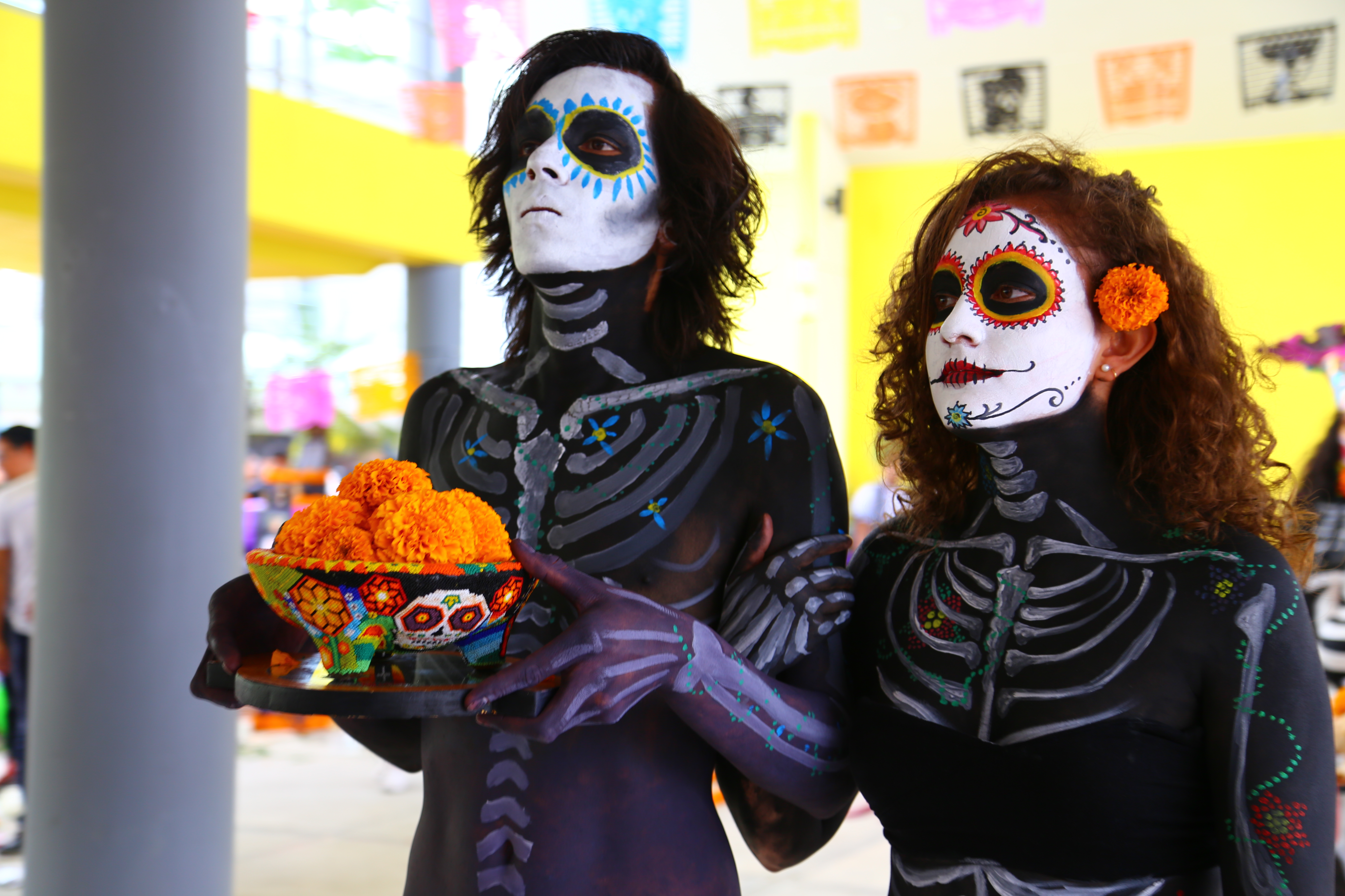 Cuerpos pintados y molcajetes intervenidos por los estudiantes de la carrera de Diseño de Artesanías fueron el color del festival; el performance que se caracterizó por su particular simbolismo e integró diversos elementos como calaveras, música a base de percusiones y olor a copal, cautivó a cada uno de los asistentes.