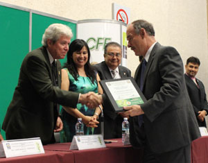 ,Dicho reconocimiento se le fue entregado en la clausura del Congreso en las instalaciones de la Expo Guadalajara en manos de la maestra Mónica Maricela Reyes Garrido, directora general de Mejoramiento Ambiental en representación del C. Emilio González Márquez, Gobernador Constitucional del Estado de Jalisco y del Ing. Eduardo Calderón Reynoso presidente del Colegio de Ingenieros Mecánicos Electricistas del Estado de Jalisco.
