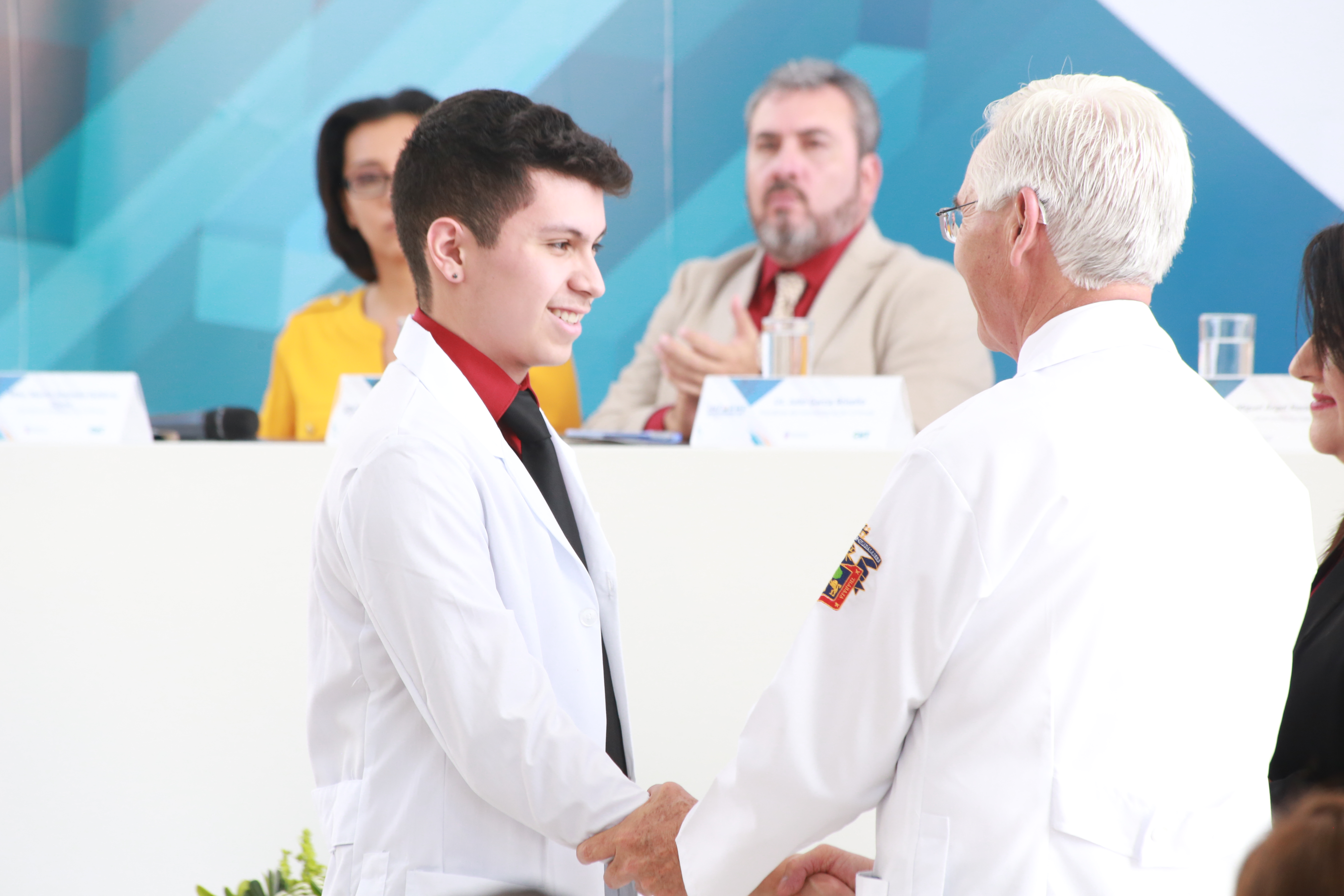 ,Durante su participación, se le dio la bienvenida a Diego Rojas como estudiante de la carrera de Médico Cirujano y Partero. Rojas es beneficiario del Programa Emergente de Atención a Estudiantes Repatriados de Estados Unidos de América implementado por la Universidad de Guadalajara y que busca apoyar a los estudiantes mexicanos repatriados en condiciones de alta vulnerabilidad a iniciar o continuar sus estudios de nivel medio superior y superior en la Universidad de Guadalajara. El estudiante aceptó la oferta del rector de centro de participar en el programa Becarios para incorporarse en la enseñanza del idioma inglés.